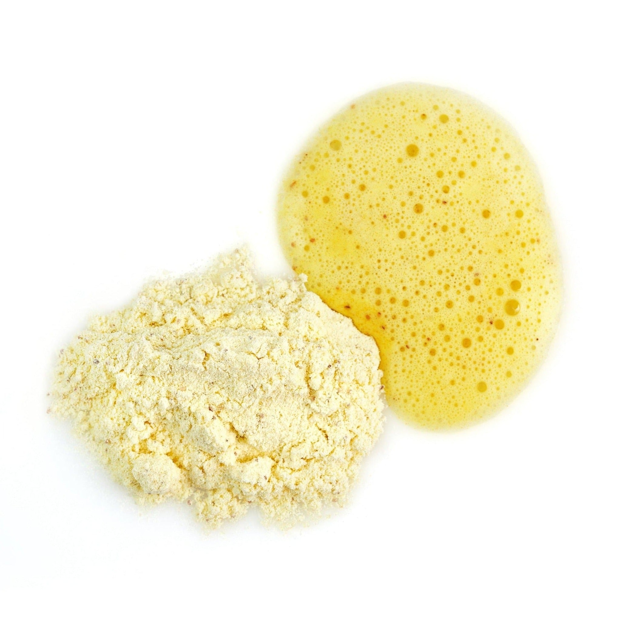 Turmeric-infused powder bursts into a sunny, silken foam.